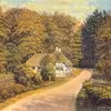 Rathlousdal. Foto af maleri af landarbejderbolig og smedie.