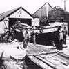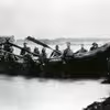 Den gamle redningsbåd ved Thorupstrand, trækkes på land af hesteforspand.