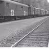 Ødelagte jernbanemateriel omkring Nykøbing F. station sandsynligvis lige efter besættelsen, Røde Kors togvogne og aktivitet ved Nykøbing F. station