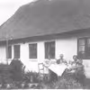 Jakob Jensen med sønnen Jens Tage Nørskov Jensen på armen i "Villa Kølvrå", Østergade 16, Karup