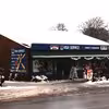 Brugsuddelerparret Bertha og Arnold Enevoldsen, foran indgangen til privatboligen, ca. 1955,