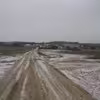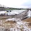 Egnsplanvej under bygning. Gug - Sønder Tranders. Set fra Sønder Tranders Vej - gården Bruunsted i baggrunden.