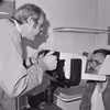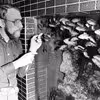 Peter Duus, optiker, ved akvarie i hans forretning på Vestergade 2