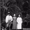 Inspektør Dalgaard, Tove Høst og Edle Roesdahl i haven på Øster Aslund.