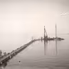 Jolle med tre drenge og pælenedramning med ramslag ved mole.