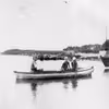 Smakke-jolle ud for sildemarken med hotellets badehuse i baggrunden.