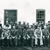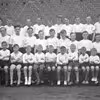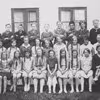 1932 Grættrup skole, eleverne foran gymnastiksalen, der lå lige øst for skolen. Billedet er taget fra vejen, mod den store sal