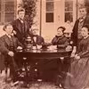 Sognefoged Christian Larsen og Maren Nielsdatter med familie foran Kærsgård i Venslev