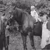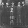 Postkort: Nysted i Houe. På billedet er en kvinde og 5 børn.
