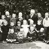 Klassebillede fra Ordrup Latin- og Realskole omkring 1890. I baggrunden til højre ses skolens leder, H.C. Frederiksen, kaldet Friser