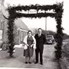 Margrethe og Kristian Brun Bjerg paa sølvbryllupsdagen foran Skjertoft 3, Skjertoft, 1962-66