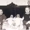 Anne og Erik Thomsens børn fra venstre: Jenny - tvillingerne Kirsten Marie og Knud Erik - Niels kristian, Vester Skov paa Skjertoft 5 i Vandborg, 1958