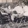 Familiekomsammen i haven. Skovlund ca. 1950.