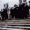 Bryllup i Glostrup kirke 8. juni 1946. Bryllupsgæster forlader kirken