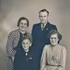 Musiker og købmand Ernst Rasmussen (1900-1971), Verninge Varehus, med hustru Astrid (1906-1990) og børnene Orla og Inger.
