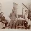 Karetmager Peter Larsen og hustru Thora med deres tre børn Johanne, Hans og Gregers på besøg i "Futtis" have,