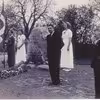 Indvielse af mindesten, maj 1945. Fra venstre: Verner Nielsen, Bitten Sørensen, ukendt, Anne Lise Jeppesen, Niels Albrechtsen