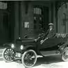 Postbiler og postbude foran Skælskør Posthus.