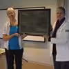 Sonja Thøgersen og Inge Nørmølle viser et billede frem malet af Jens Olesen.