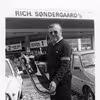 Autoforhandler Leif Stenderup, fotograferet ved en Lada personvogn uden for firmaet på Industrivej 28 i Ribe.