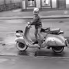 Sverre Eliasen står på en Vespa.