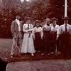 Karen Blixen, søstre og venner opfører forfatterindens "Hovmod står for Fald", 1896. Karen Blixen er 11 år, nr. 2 fra venstre, Rungstedlund
