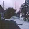 Avernak gade, til venstre nedrevet hus, til højre posthuset, Skallevej 2