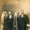 Bryllupsbillede af Stinne og Georg Bach, og Marie og Jens Kr. Hansen (Daugaard), 6823 Ansager