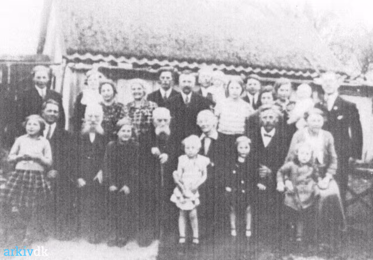 Familiebillede ved Jens og Ane Kirstine Hansen, Firhuse, Vedbysønder, guldbryllup |