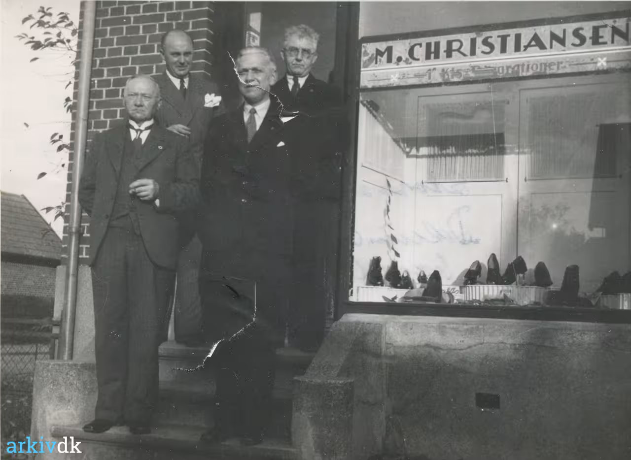 | Beskrivelse | Skomagermester Marius Christiansen stående bagerst til højre. De 3 andre er ukendte. |