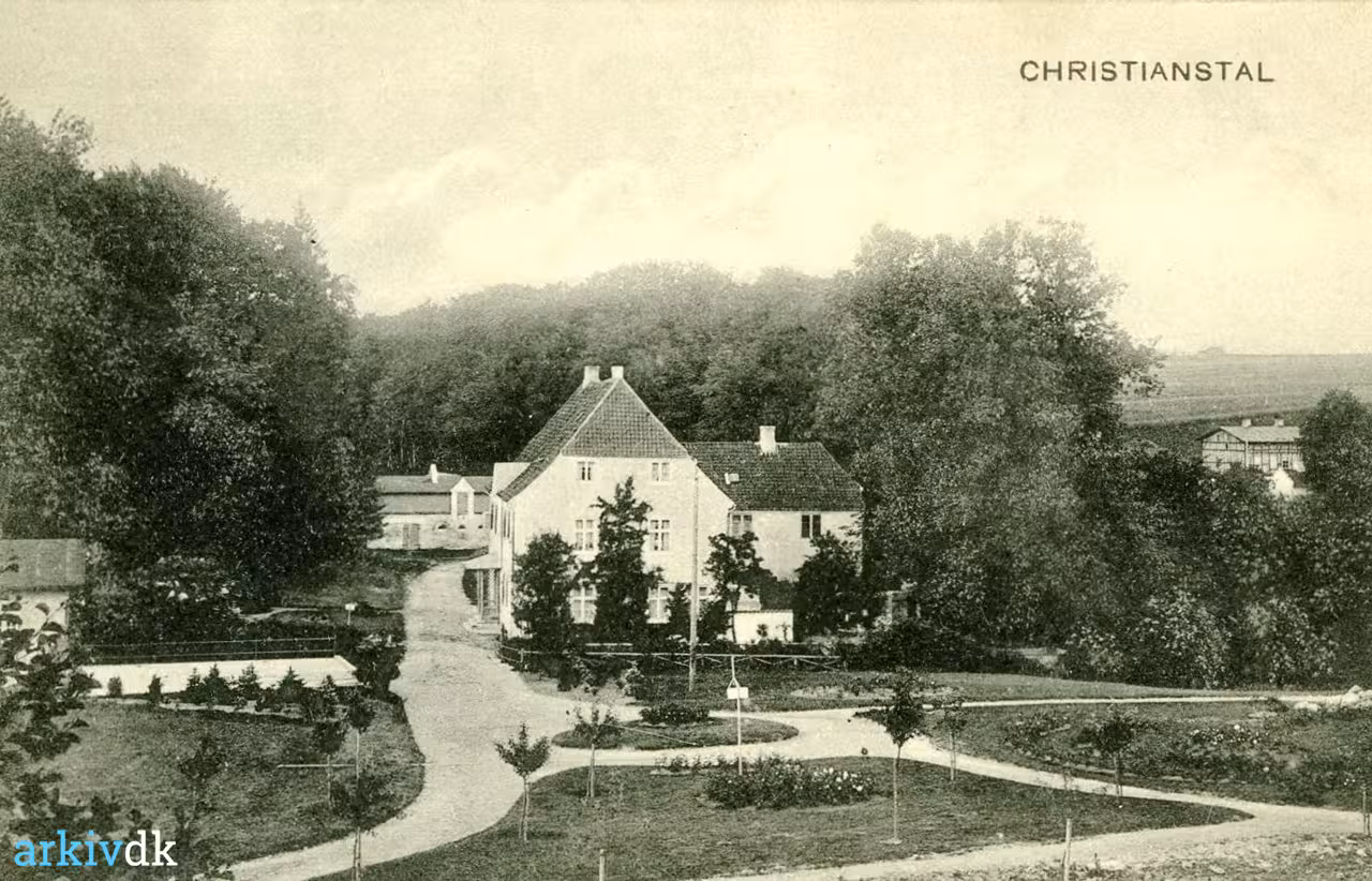 Til højre ses El-Værket og bag ved Herrehuset, til højre ses Arbejderboliger. |