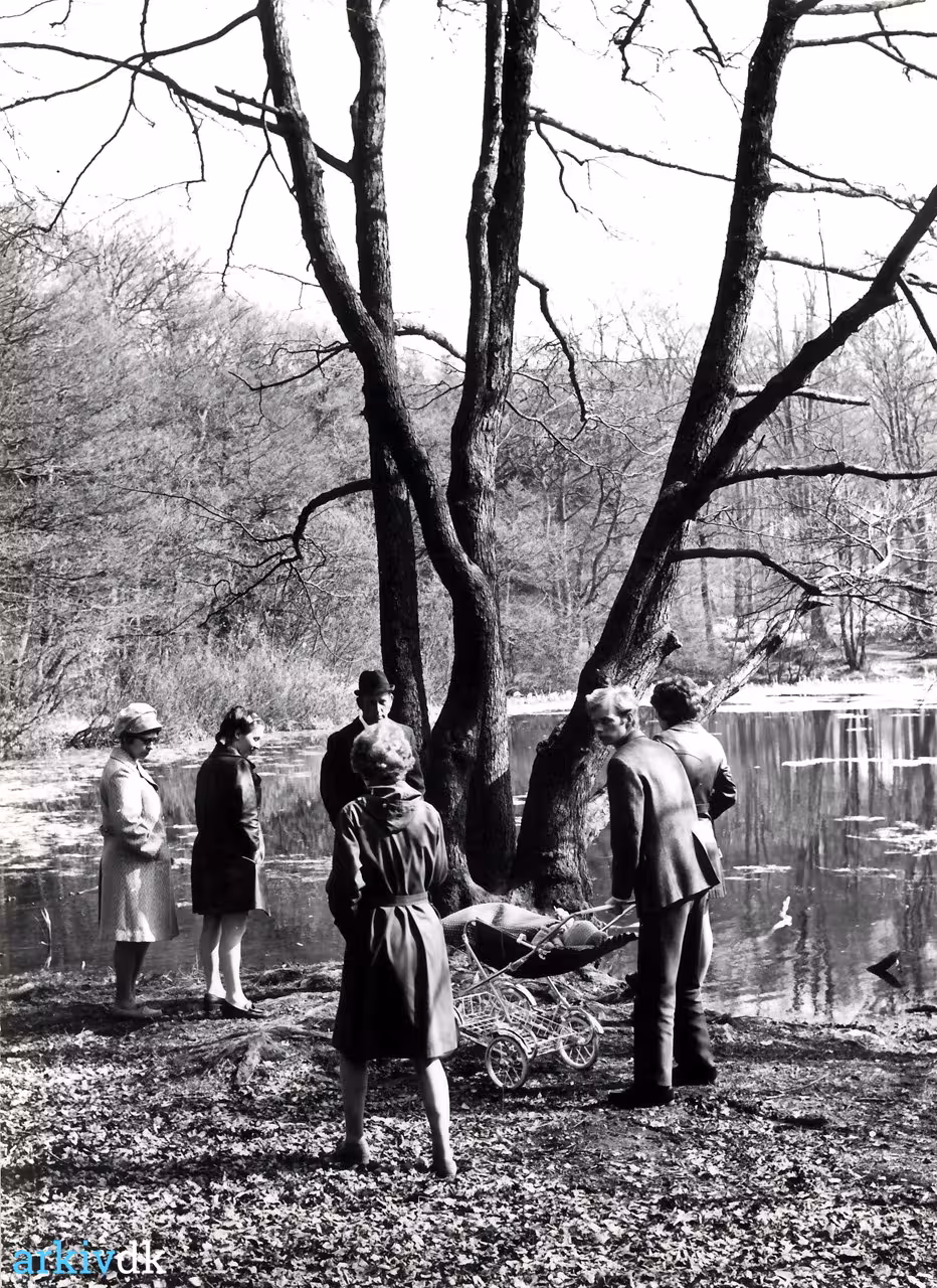 Beskrivelse Familie på forårstur ved Studentersøen i Slagelse Lystskov
