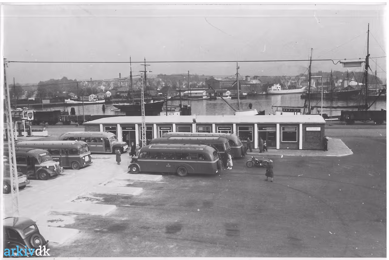 Indtil 1953 holdt på en plads nær havnen ved det gamle pakhus. Men den 11. august 1953 blev der indviet en helt ny station. Den fik adresse på Jessens Mole 11. Den blev opført på bare 4 måneder. Arkitekterne var: Werner Madsen, Folke Olsen og Lund Rasmussen.