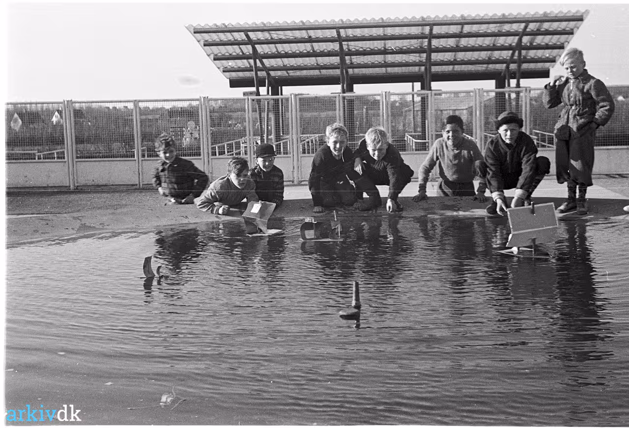 Hvis man bare har lidt fantasi, kan man skabe sit eget univers. Det synes i hvert fald at have været mottoet for disse drenge, der blev fotograferet i 1951 uden for Odense Stadion. Her har de søsat flere skibe, bestående af et bræt og et par stykker papir som sejl. |