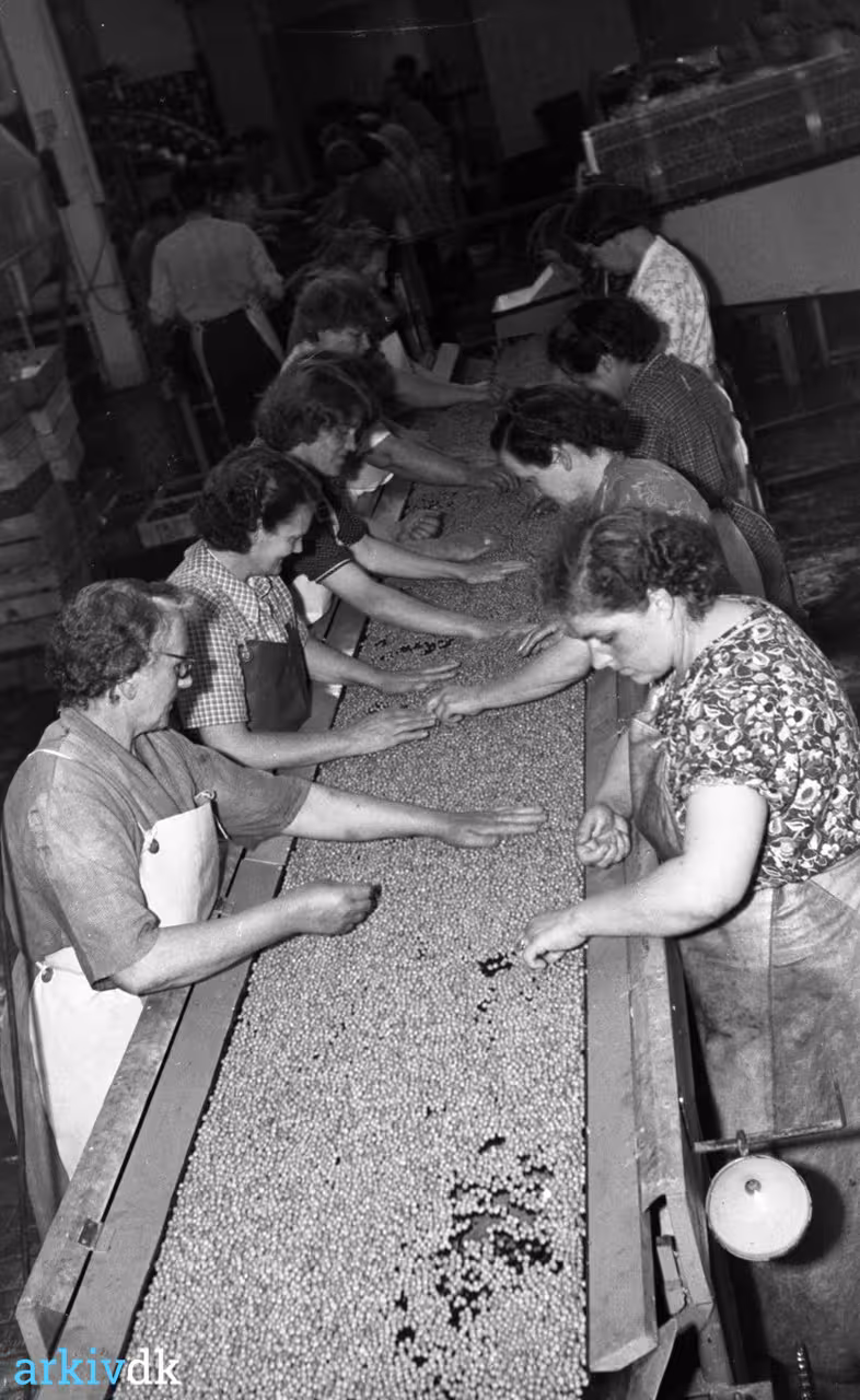 Konservesfabrikken Plumrose på Odense Havn havde i juli 1952 netop gennemgået en større modernisering: Blandt andet havde man fået tilført en rensemaskine, der efter sigende kunne fjerne 99% af de dårlige ærter. Den sidste procent tog 10 skarptseende damer sig af. |