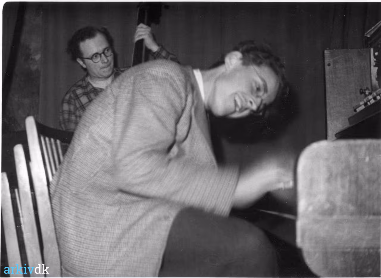 Henrik Müller ved pianoet i samspil med bassisten Torben Munk, 1958.