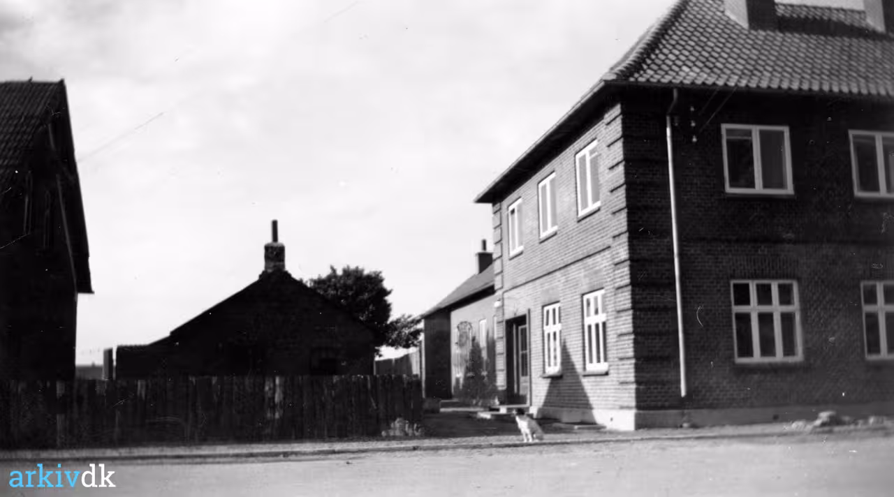 Frontbillede af det nye forsamlingshus. Til venstre ses et skur tilhørende Stokbrovej 4.