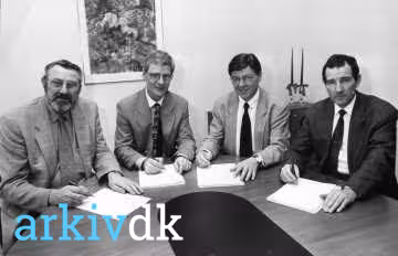29/1-1996 Borgmestre Fra v.: Willi Eliasen, Køge Rene Milo, GReve Poul Arne Nielsen, Vallø Mogens Baltzer, Solrød Kommune |