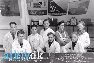 Otte unge mænd, der har afsluttet malerfagets svendeprøve på Teknisk Skole.