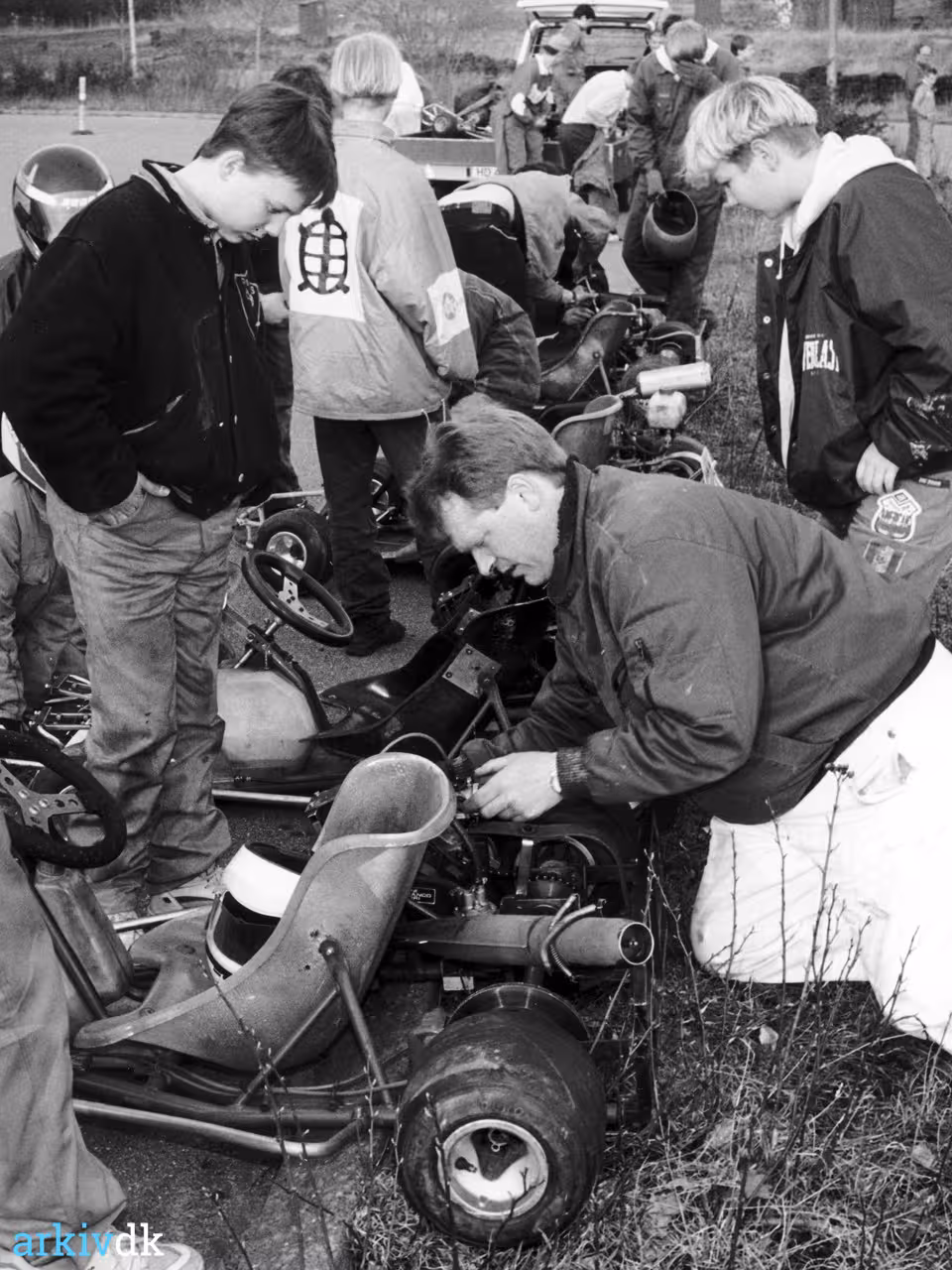 Beskrivelse Kørerne, fra Blåkilde Motorklub, er ved at gøre go-carterne klar.