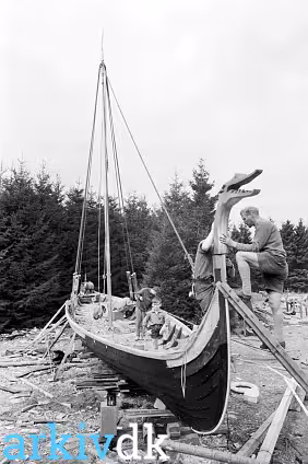 Spejdernes vikingeskib "Imme Gram" under hovedreparation.
