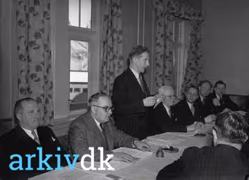 Beskrivelse En ukendt taler hos Uddelerforeningen på Palads Hotel.