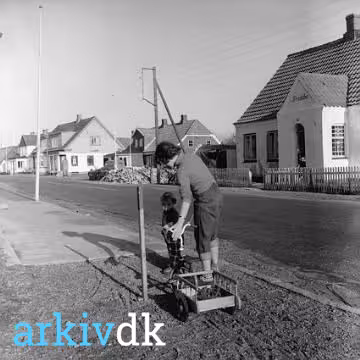 Beskrivelse Far og søn er ude at gå i Hjerting.