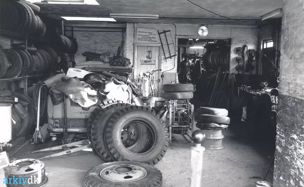 Usserød Kongevej 74 i 1974. Vulkanisør Helge Nielsens værksted.