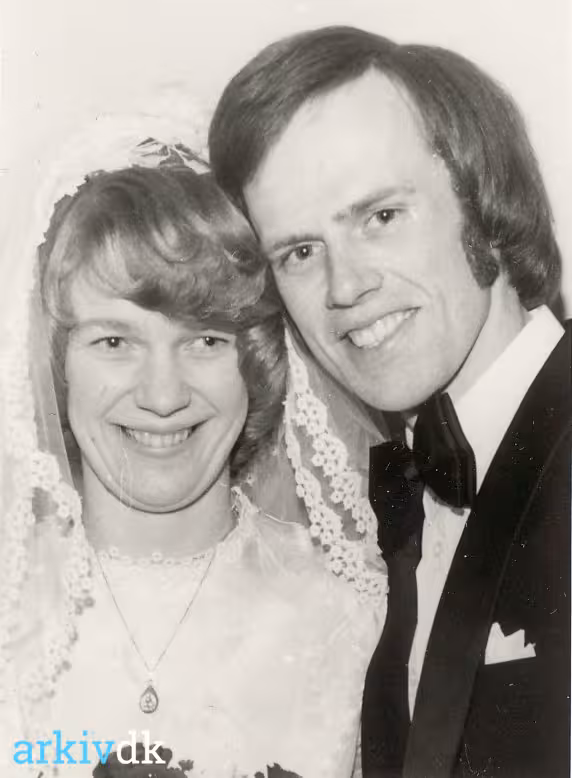 Brudepar. Smørrebrødsjomfru Lone Lindholm, Bække og tømrer Poul Christensen, Gesten