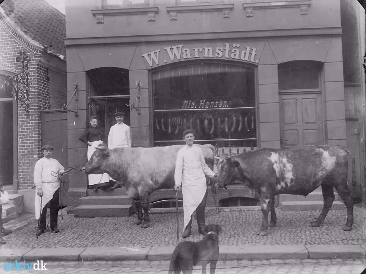 Vestergade 13 med slagter W.Warnstädts efterfølger Nic. Hansen. Ca.1905