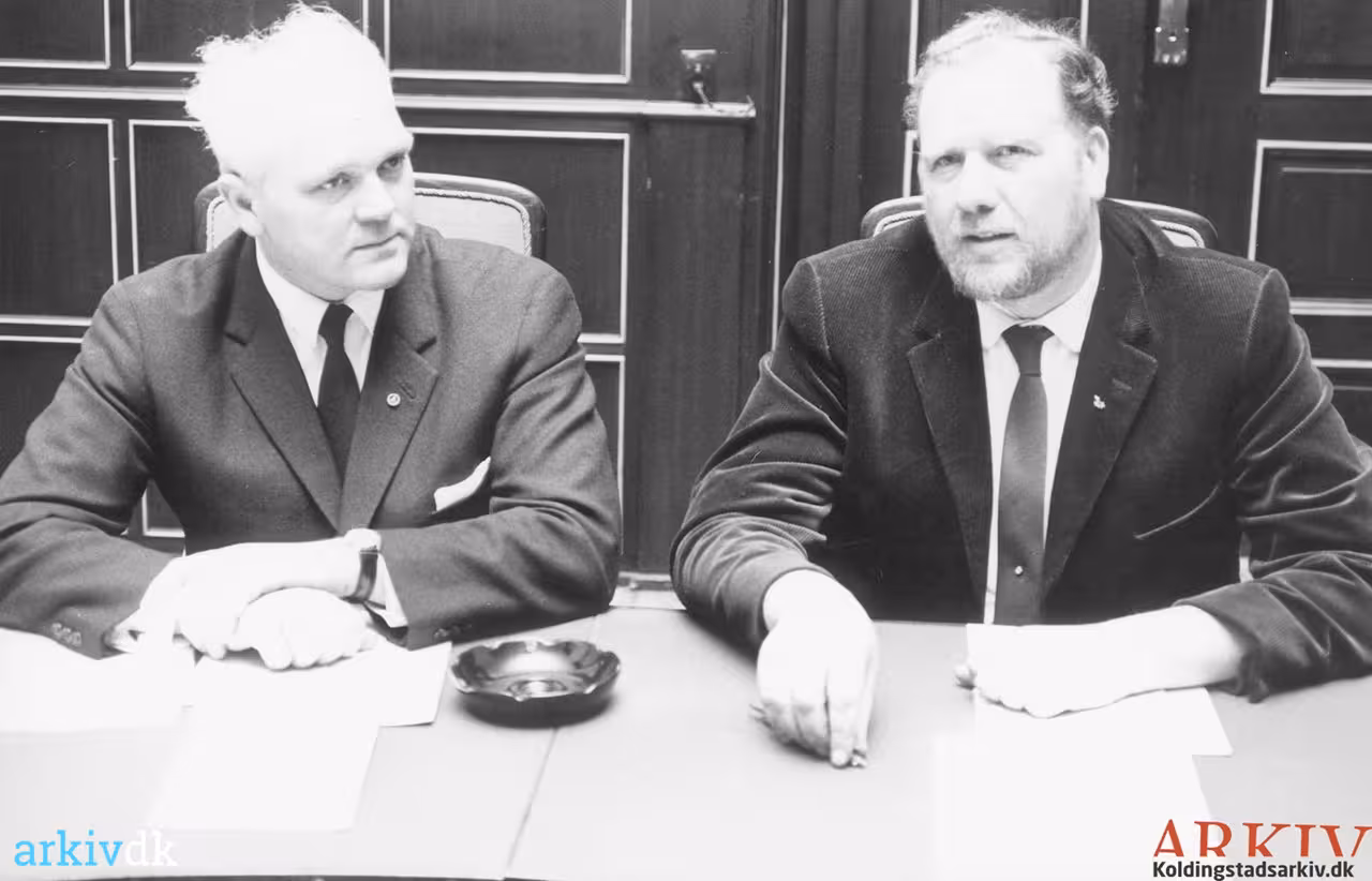 Kolding. Det nye byråd i 1966. Murermester Jørgen Krat og Seminarielektor Ib Otto Borg Mogensen, begge Socialdemokratiet
