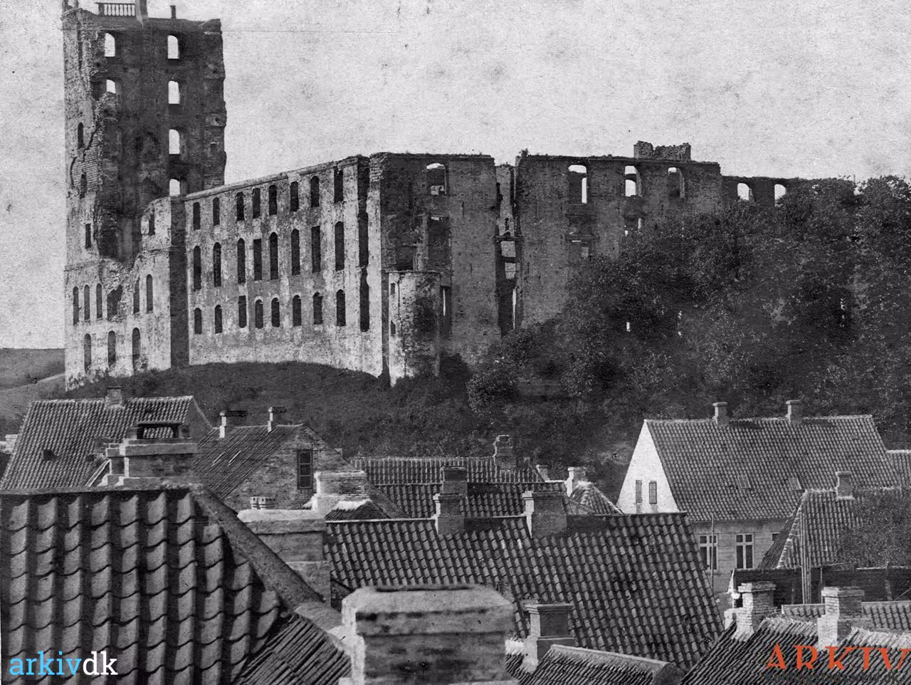 Beskrivelse Kolding. Udsigt fra byens tage til Koldinghus