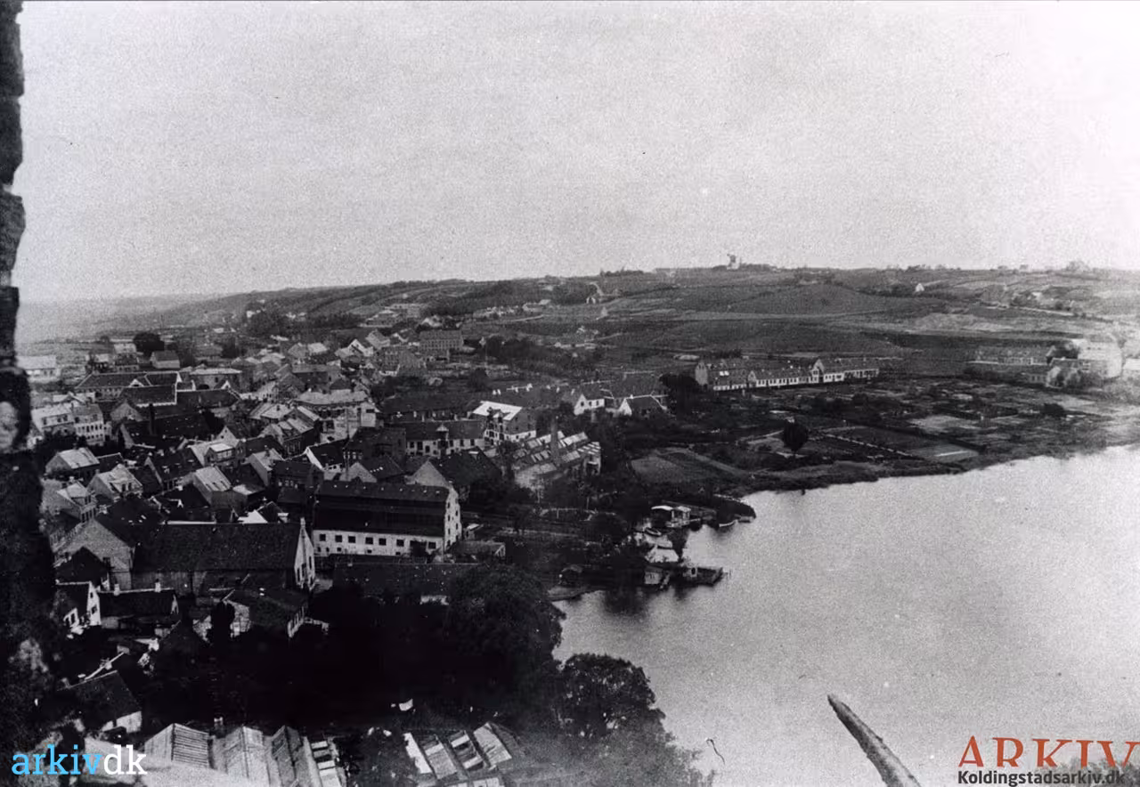 | Beskrivelse | Kolding. Udsigt fra Koldinghus mod nord med Slotssøen i forgrunden. |