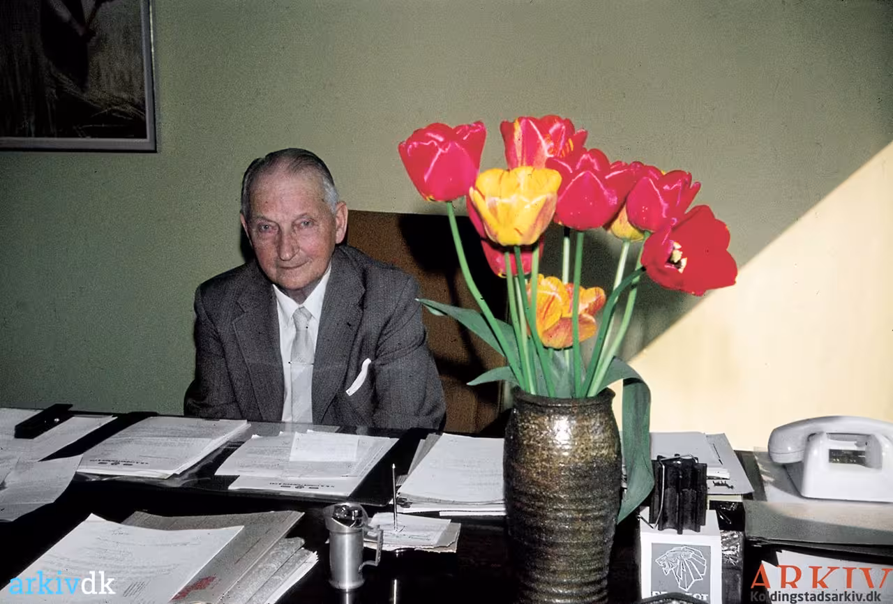 | Beskrivelse | Kolding. Portræt af producent S. A. Christensen fra A/S S. A. Christensen & Co, Malkemaskiner også kaldet SAC på Ndr. Havnevej 2. Portræt taget i forbindelse med Gudrun Hechmann´s interview. |